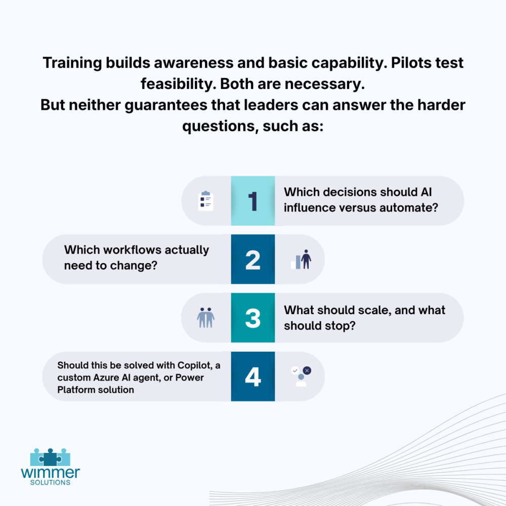Training builds awareness and basic capability. Pilots test feasibility. Both are necessary.